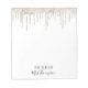 This modern white background with gold glitter drips notepad and elegant simple black script text are great design elements to be on this product. The great part here is that you can customize it by adding a name, your own information and text.