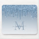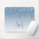Glitter Drips Blue Sparkle Monogram Elegant Script Mouse Pad