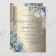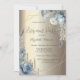 Glitter Drips Champagne Gold Blue Roses Frame Invitation