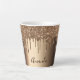 An elegant, girly and glam mug. Faux bronze glitter drip, paint drip. Dark copper ombre metallic looking background. Template for your name written with a hand lettered style script. Brown colored letters.