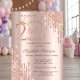 Glitter Drips Crow Rose Gold 2nd Birthday Invitation