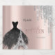Elegant black dress, featuring diamonds in the Eiffel Tower design and silver glitter drips on a rose gold background.