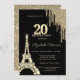 Glitter Drips,Eiffel Tower Diamonds 20th Birthday Invitation