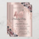 Glitter Drips Rose Gold Flowers 40th Birthday Invitation