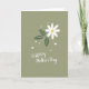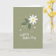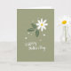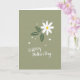 This card features a simple digital illustration with a single flower centered on a muted sage-green background, giving the scene a calm, affectionate feel ❤️. The bloom has seven white petals spreading evenly from a bright yellow center, like a daisy-like flower offered with quiet care. To one side, three deep green leaves stretch outward with fine white vein lines, adding a grounded, natural balance. Small white hearts and tiny round dots float near the top and bottom, like little signs of closeness shared between loved ones 🌼. Near the lower area, the message is arranged on two lines, with “HAPPY” set above “Mother’s Day.” The word “HAPPY” appears in white, neat, simple lettering, while “Mother’s Day” is also white and written in a smoother, flowing style. The hearts are scattered lightly around the flower, with a few near the top edge and a few near the bottom corners.
