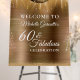 Let your guests know they have arrived with this trendy gold 60 & Fabulous Celebration foam board featuring gold disco balls shining on a gold brushed metallic background with party streamers and gold glitter. Easy to personalize with custom options. Use the 'Personalize' button to customize the product, or add text.