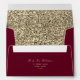 Add a touch of luxury to your wedding suite with this elegant 5x7 envelope, designed in rich burgundy with sparkling glitter gold accents. Featuring a personalized monogram on the top flap and a custom return address, this envelope pairs perfectly with sophisticated and formal wedding invitations. A modern and refined choice for couples seeking timeless elegance and bold style.