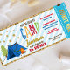 Glitter Gold Blue Glamping Ticket Pass Birthday Invitation