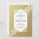 Plain white envelopes are included with paper invitations and will come to fit the invitation size you select. If you don’t need the envelopes, you may choose to not receive them by selecting the dropdown below "Envelopes" and choosing "None." If you’d like to have a design on your envelopes, you can browse all of these available envelopes to find the design that complements your Glitter Gold Elegant Vintage Wedding Invitation.
