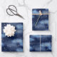 Glitter Gold Stars Dark Blue Sky Pattern Wrapping Paper Sheets