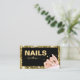 Black and Gold Glitter Nail Salon Manicurist Modern Loyalty Card with woman manicured hand. Edit nail artist name, social profile and phone number etc.