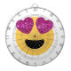 glitter heart eye emoji dartboard with darts