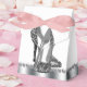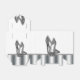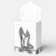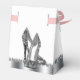Beautiful black and silver glitter high heel shoe party favor boxes. These elegant black and silver glitter high heel shoe favor boxes can be customized with text and you can change the background color and bow color.