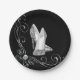 Pretty silver swirls and glitter high heel shoe paper plates. You can add a background color and text to personalize these elegant high heel shoe paper plates for your event.