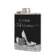Personalized flask with silver and black glitter high heel stiletto women's shoes and custom elegant script name, monogram, or event slogan or motto.
