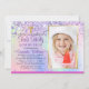 Yes, you can print on the back of your invitation for free! Most designs already have a corresponding design on the back that can be personalized using the Design Tool and going to Layers. This is a great way to communicate more information or further personalize your Glitter Holographic Photo First Communion Invitation. The option is really up to you.