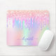 Glitter Iridescent unicorn rainbow monogram name Mouse Pad