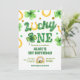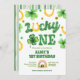 Green Glitter St Patrick First Birthday Invitation, Lucky One 1st Birthday Invite, Editable Shamrock Kids Birthday Party