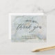 glitter blue marble background with elegant script "thank you" and a stencil minimalist floral decoration coupled with all information in serif font