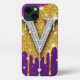 Glitter Monogram V ✨ Gold Drip Purple Luxe Glam iPhone Case