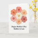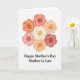 This card features seven rose-like flowers arranged in a balanced cluster on a bright white background, with one creamy bloom at the center like a gentle hug ❤️. The petals blend soft peach, warm coral, blush pink, and deeper rose tones, and the layered gradients give them a velvety look that feels quietly affectionate. The flowers lean toward one another in a way that suggests closeness and family warmth, like a group gathered for a loving photo. Beneath the bouquet, the message “Happy Mother’s Day Mother in Law” sits centered in a refined serif style. The lettering appears in a dark, easy-to-read color that stands out clearly against the white space. Plenty of open space around the artwork keeps the design airy and calm, letting the bouquet feel like the main gift 🌼. The central cream flower is slightly larger and lighter than the surrounding blooms, drawing the eye to the middle of the arrangement.
