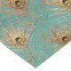 Pretty gold glitter peacock feathers pattern on aqua background.