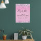 Pretty and girly 14th birthday party welcome poster and photo prop with sparkly holographic purple, pink and silver faux glitter confetti along the borders, a pink background and her name in a soft grey trendy script.