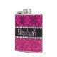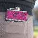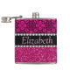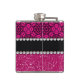 A hot pink / purple glitter that sparkles on the bottom, and bright pink / purple with a black twirl / swirl design background pattern on the top. The center is left for personalization / personalize surrounded with white diamond rhinestones (faux). (PHOTO PRINT)