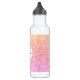 Glitter Pink Coral Rose Gold Round Monogram Stainless Steel Water Bottle