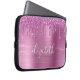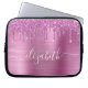 Monogrammed chic and girly laptop sleeve featuring pink faux glitter drips and a pink brushed background. Personalize with your name in a stylish trendy white script with swashes.