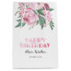 Elegant and stylish floral birthday gift bag features pink glitter bold script "Happy Birthday" in the center and stunning watercolor pink peony flower with leafy greenery at the top. Personalized the gift bag with your name and event date.