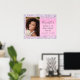 Pretty, glamorous and girly sweet 16 birthday party welcome poster featuring her photo, sparkly holographic purple, pink and silver faux glitter confetti along the borders against a pink background and her name in a soft gray trendy script.