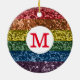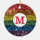 Glitter Pride Rainbow Monogram Sparkle Ceramic Ornament