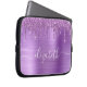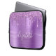 Monogrammed chic and girly laptop sleeve featuring purple faux glitter drips on a purple faux brushed metallic background. Personalize with your name in a stylish trendy white script with swashes.