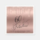 Elegant and chic personalized 60th birthday party napkins featuring "60 & Fabulous" written in a stylish script against a rose gold faux foil background, with rose gold faux glitter dripping from the top. Personalize with her name and date of the party.