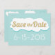 A fun and memorable save the date postcard to announce your wedding. Get groovy with gold glitter.