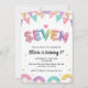 Glitter SEVEN Girly Rainbow Sequin 7th Birthday Invitation