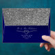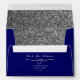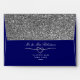 Simple, chic, modern, glitter silver and blue 5x7 wedding envelope with return address and elegant calligraphy script.