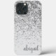 Customized monogrammed script name modern stylish faux glitter and elegant girly silver Add Your Name iPhone 13 Pro Max Trendy Case are personalized and perfect for Sweet 16, 13th, 21st, 30th, 40th, 50th, 60th, 70th, Birthday Party, Weddings, Mother's Day, Valentine's Day, Quinceanera, Bridal Shower, Bachelorette Party, Anniversary, or New Driver