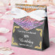 An elegant Birthday Favor Box, with gold and silver foil. An orange glitter Zebra print mixed with red, purple, rose gold, pink, gold colors and decorated with shiny diamonds.