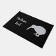 Glitter sparkle silver color kiwi bird doormat to make greet visitors to your door. This lovely design combines a shiny, sparkly kiwi bird with space for custom text to personalise your welcome mat. The kiwi is in a beautiful gleaming silver colour with a white outline. The customizable text is is white, and can be replaced with a name or text that is meaningful to you. Flightless and nocturnal kiwis, of the genus Apteryx, are endemic to Aotearoa New Zealand, and can also be used to refer to a New Zealander or someone with ties to Aotearoa. This kiwi design is presented here on a black backdrop. This gorgeous doormat makes an attractive yet practical addition to any entranceway!