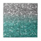 Glitter Sparkle Teal Silver Ombre Sequin look Ceramic Tile