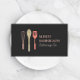 A trio of common kitchen utensils along with your name or company name makes the perfect logo on this customizable business card for a catering company, bakery, restaurant, personal chef, baked goods, food stand, or any food-based business. The spoon is filled with an image of gold glitter for added pop. Art and design © 1201AM CREATIVE