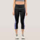 Black and Blue Faux Glitter Stripe Personalized Crop Capri Leggings with a wide vertical stripe down the leg with custom text in the middle that can be different on each side. Customize with a a team motto, mascot, favorite quote, verse, inspirational mantra, team name, or add your name on repeat down the side of each leg! Great for dance, pom, and cheerleading uniforms and parade and marching band outfits. Legging color and fonts can be changed by clicking 'customize further.'
