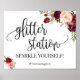 Change note and hashtag into the template, for more customization (font color, font style, remove or move elements, change wording *Glitter, Station words are not editable but color can be changed), click on personalize, scroll down and click on link "click to customize further".