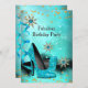 Glitter Teal Blue High Heels Birthday Party Invitation