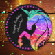 The unicorn is in many different colors, with shimmering glitter accents that add to its magical look. A ring of pink and purple stars line the plate. For a special personalized touch, add Happy Birthday and a first name, or other custom text.