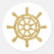 Glittering Gold Nautical Ship's Wheel Classic Round Sticker