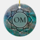 Glittery Blue Elegant OM Lotus Ceramic Ornament