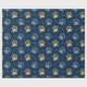 Gold and blue dog paws in a seamless pattern on a dark blue background, a perfect fit for wrapping fur baby presents.